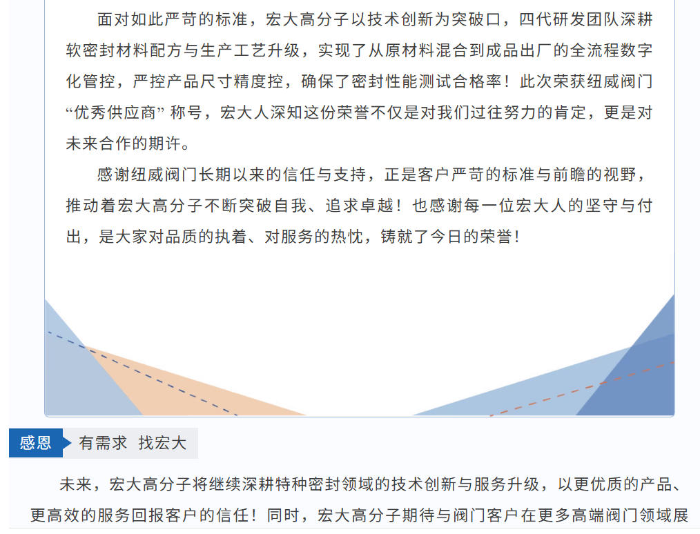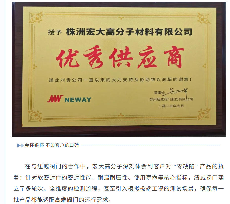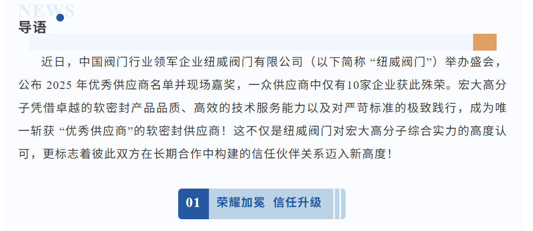 喜報|熱烈祝賀宏大高分子榮獲紐威優(yōu)秀供應(yīng)商