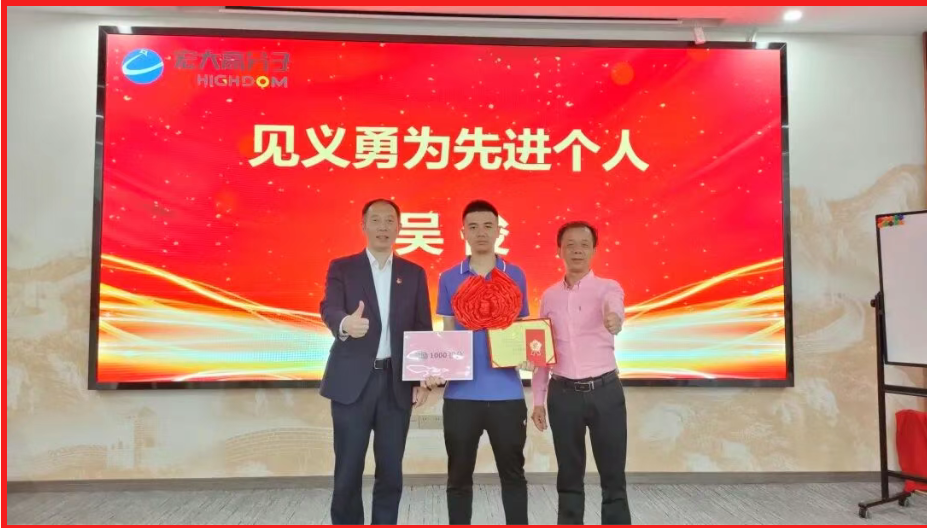 吳俊同志的行為不僅是個(gè)人品德的閃光,更傳遞了社會(huì)的溫暖和力量,也是株洲宏大高分子材料有限公司“誠(chéng)信、感恩、利他、精進(jìn)、創(chuàng)新、安全”核心價(jià)值觀的生動(dòng)實(shí)踐,和公司一直以來(lái)提倡的“為社會(huì)發(fā)展做貢獻(xiàn)”使命的真實(shí)寫(xiě)照。